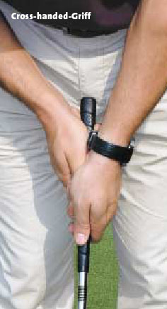 modifizierten Griffes beim Putten, sei es der Cross-handed- Griff, der